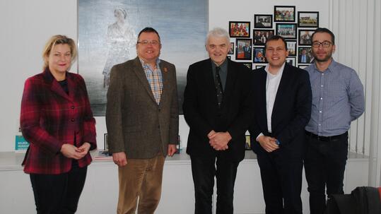 Die Geschäftsführer Karl Bachl und Michael Küblbeck und der neue Werksleiter vor Ort, Andreas Pfau, trafen kürzlich zu einem Antrittsbesuch mit Bürgermeister Christian Thegelkamp und Wirtschaftsförderin Birgitt Stolz im Wadersloher Rathaus zusammen.