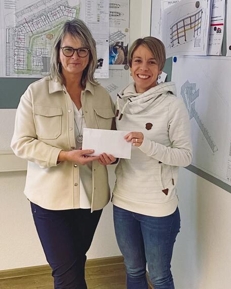 Kurz vor Weihnachten konnte Katharina Garhammer (im Bild rechts) die stolze Summe von 2500€ stellvertretend für den Geschäftsbereich an Doris Kluge (links, tätig in unserm Stahlbau) übergeben.