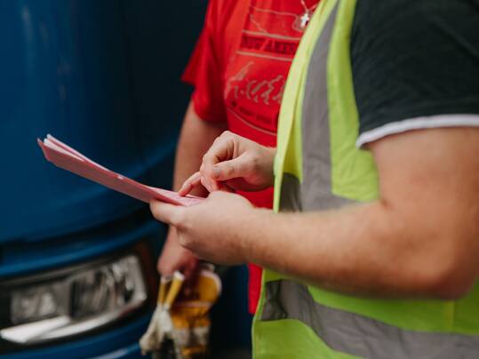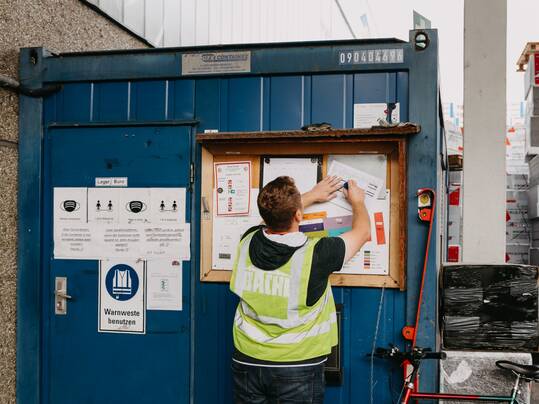 Viel Kommunikation gehört zu Markus' Jobbezeichnung quasi dazu: sei es mit seinem Team, den Fahrern oder mit den Kollegen der Dispo, die die Aufträge letztlich planen. Und man merkt, dass dem 33-Jährigen genau das liegt. Während unseres Gesprächs klingelt mehrmals das Telefon in seinem Container, der als sein Büro dient, ab und zu geht auch die Tür auf und in den Lagerhallen wird er von Kollegen oder Fahrern aufgehalten. Und Markus? Der begegnet jedem von ihnen freundlich und nimmt sich um die Fragen und Probleme an.