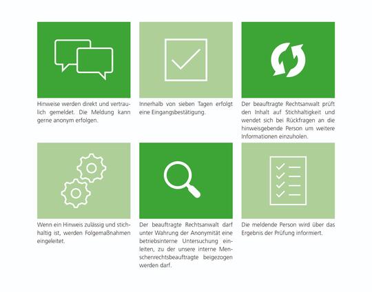 Wir nehmen jeden Hinweis ernst: Deshalb betreiben wir eine interne Meldestelle, die unseren Mitarbeiterinnen und Mitarbeiter dazu dient, uns über Missstände aus ihrem Arbeitsumfeld zu informieren. Unsere Vertrauensperson überprüft eingegangene Meldungen und ergreift im Ernstfall Maßnahmen, wie beispielsweise interne Untersuchungen oder das Einschalten der Behörden. Grundsätzlich ermöglicht es das Hinweisgeberschutzgesetz, das 2024 in Kraft getreten ist, hinweisgebenden Personen, sogenannte Whistleblower, einfach und ohne Angst vor Repressalien, auf Rechts- und Regelverstöße in Unternehmen und Behörden aufmerksam zu machen. Hinweise sollten dabei möglichst konkret und überprüfbar sein. Und: Wer seine Meldung lieber anonym abgeben möchte, der sollte dem Schreiben eine Möglichkeit zur Kontaktaufnahme (z. B. eine anonymisierte E-Mail-Adresse) beifügen. Es gilt aber auch: Eine vorsätzliche oder grob fahrlässige Meldung kann strafrechtliche Konsequenzen haben und Schadenersatzansprüche auslösen.