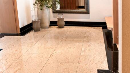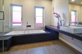 Exklusives Ambiente: Natursteinoberflächen im Bad.