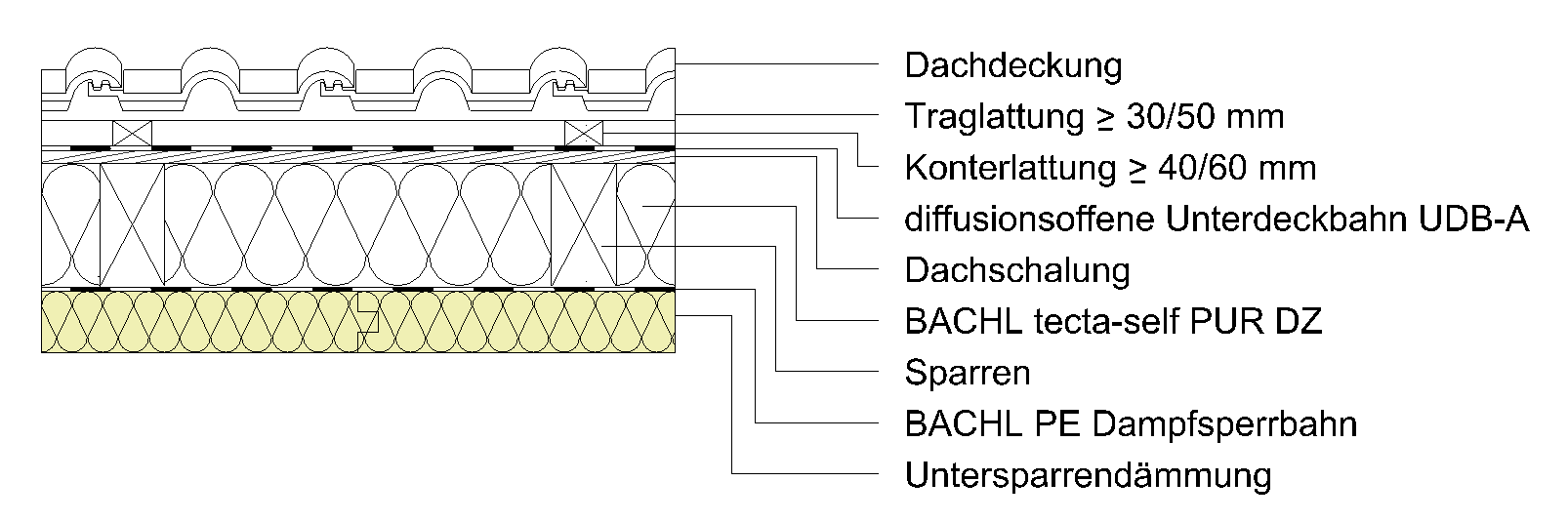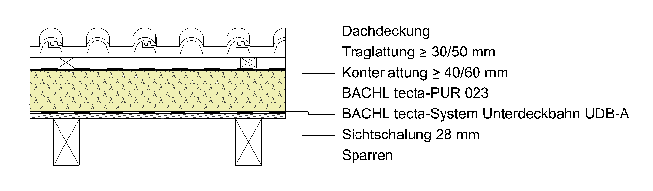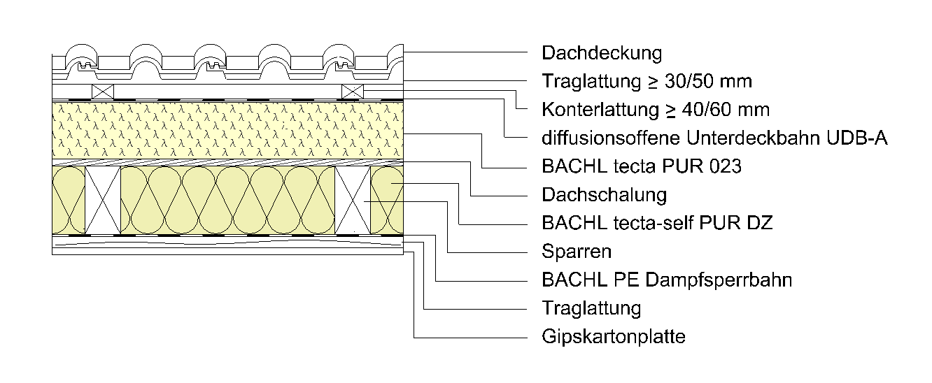 Ein großer Vorteil der hochleistungsfähigen Polyurethan-Dämmstoffe (PUR/PIR) von BACHL ist die geringe Schichtdicke bei gleichzeitig geringem Gewicht. Somit lassen sich besonders schlanke Dachaufbauten realisieren.