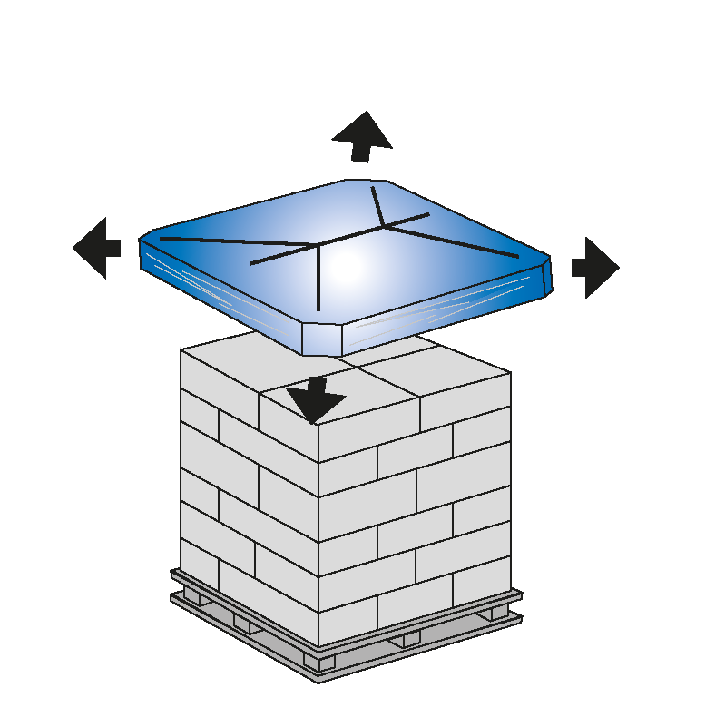 In der industriellen Verarbeitung von SF-Schlauch auf vollautomatischen Verpackungsanlagen (z.B. Ziegelindustrie, chemische Industrie, ect.) werden Hauben zur Palettensicherung schnell und kostengünstig hergestellt. In diesem Prozess wird die Haube vollautomatisch über die Palette gezogen und eingeschrumpft.